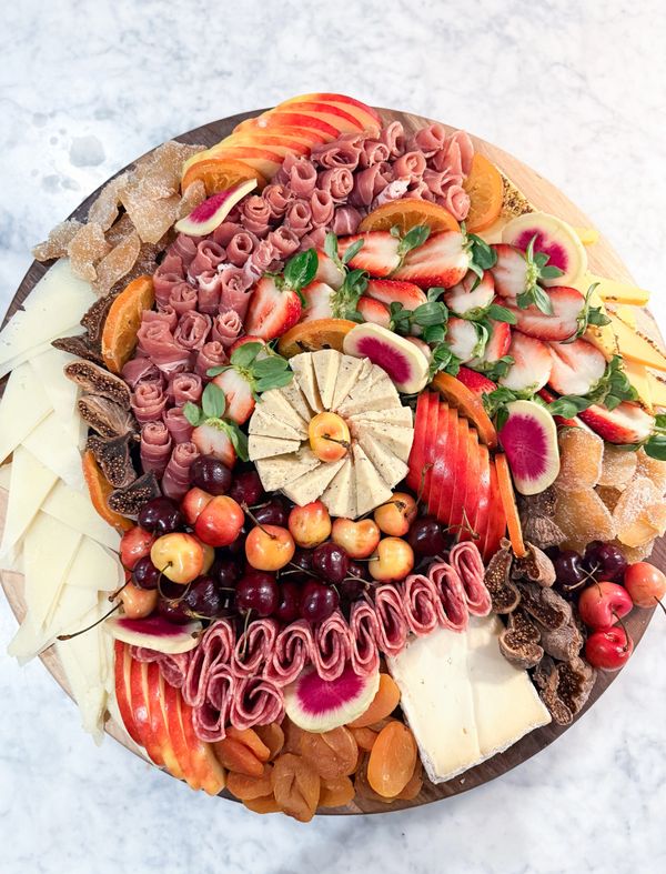 A more expansive and artfully styled grazing experience featuring a wider variety of premium cheeses, specialty cured meats, seasonal fruits, and house spreads with layered textures and specialty accompaniments. This board emphasizes visual impact as much as flavor, making it ideal for showers, wine events, celebrations, and hosted evenings.